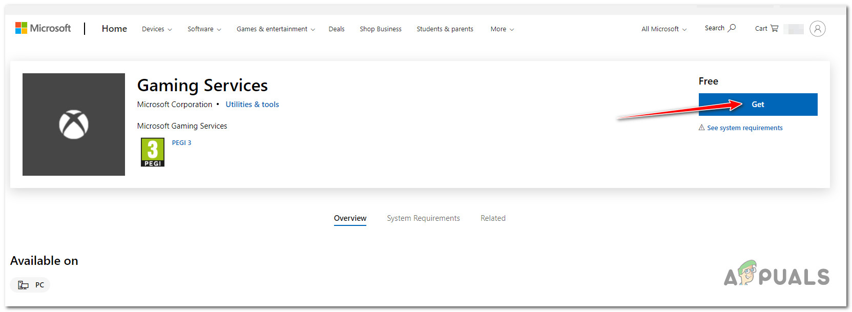 One of the most common causes that will trigger this issue is the missing of a key dependency named ‘Gaming Services’. This is a component that’s required whenever you launch a game hosted on the Game Pass Platform.