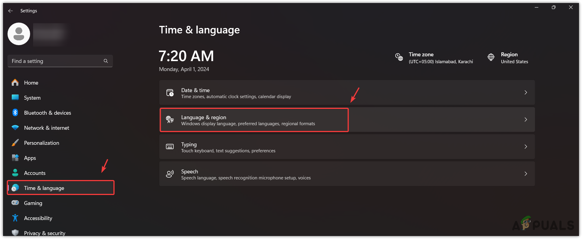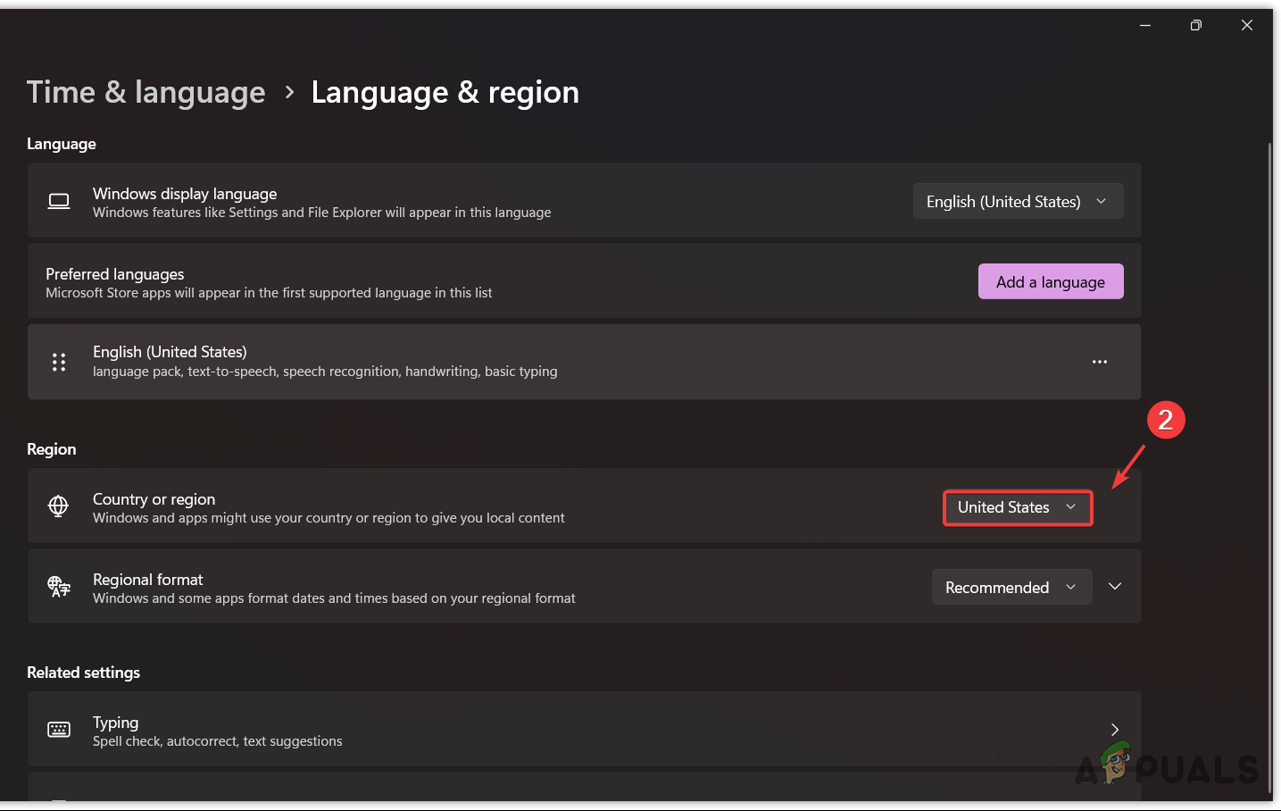 - In Language & Region, ensure the region is set to the United States, regardless of your actual location.