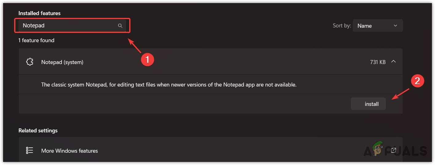 - Locate Notepad in the Optional Features window, click the dropdown icon, and then select Install.