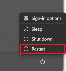 - Click the Power icon and choose Restart.