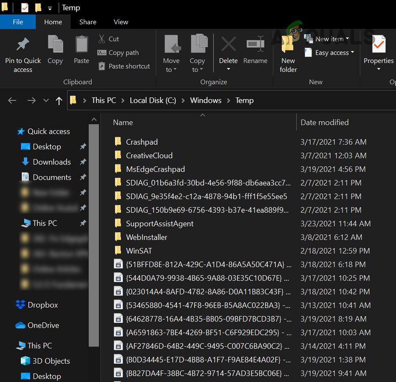 Delete the files in the Temp Folder - Then delete all the contents of the temp folder and open This PC (in the left pane of the window).