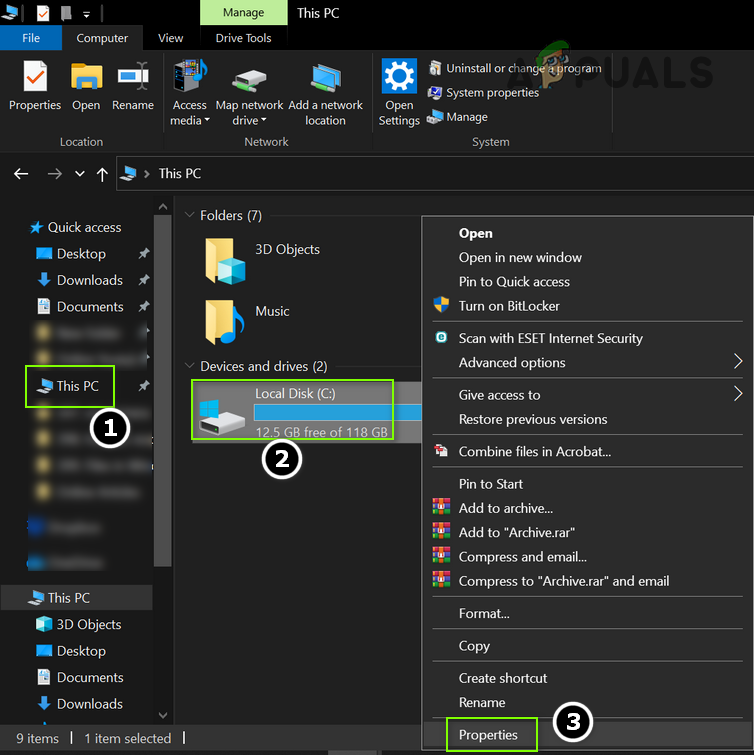- Now, right-click on the system drive (e.g., C drive) and select Properties.