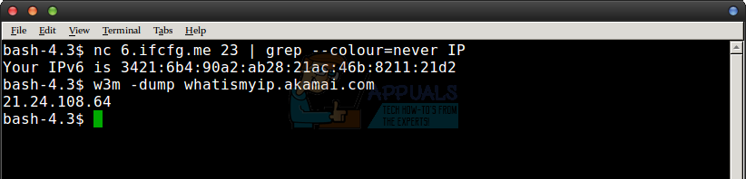 You might receive an error claiming that the program w3m isn’t installed. While you could install the package if you wanted to, you can also try curl -s http://whatismyip.akamai.com/ and see if this works. You might have curl installed already. If you do, then you’ll receive the same kind of simple output. You don’t have to play around anymore. While you could add whichever command works to a bash shell script, you can also just run it whenever you’d like just like the command in the first method. Of course, you could always install curl or w3m if you don’t have either package. Networking Linux users usually have at least one of these though.