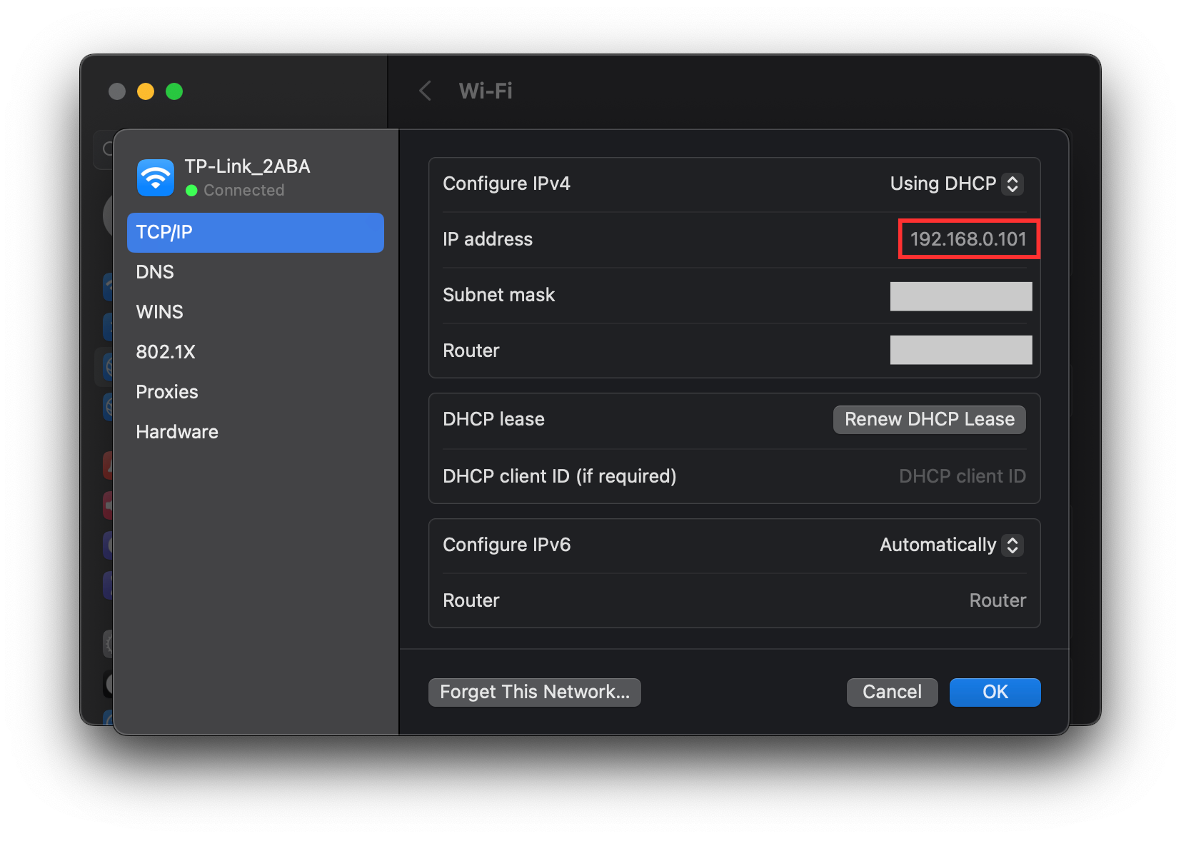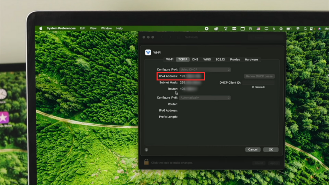 Yes, simply search IPv4 in Spotlight. On older macOS versions, go to System Preferences > Network > Select Wi-Fi > Advanced > TCP/IP.