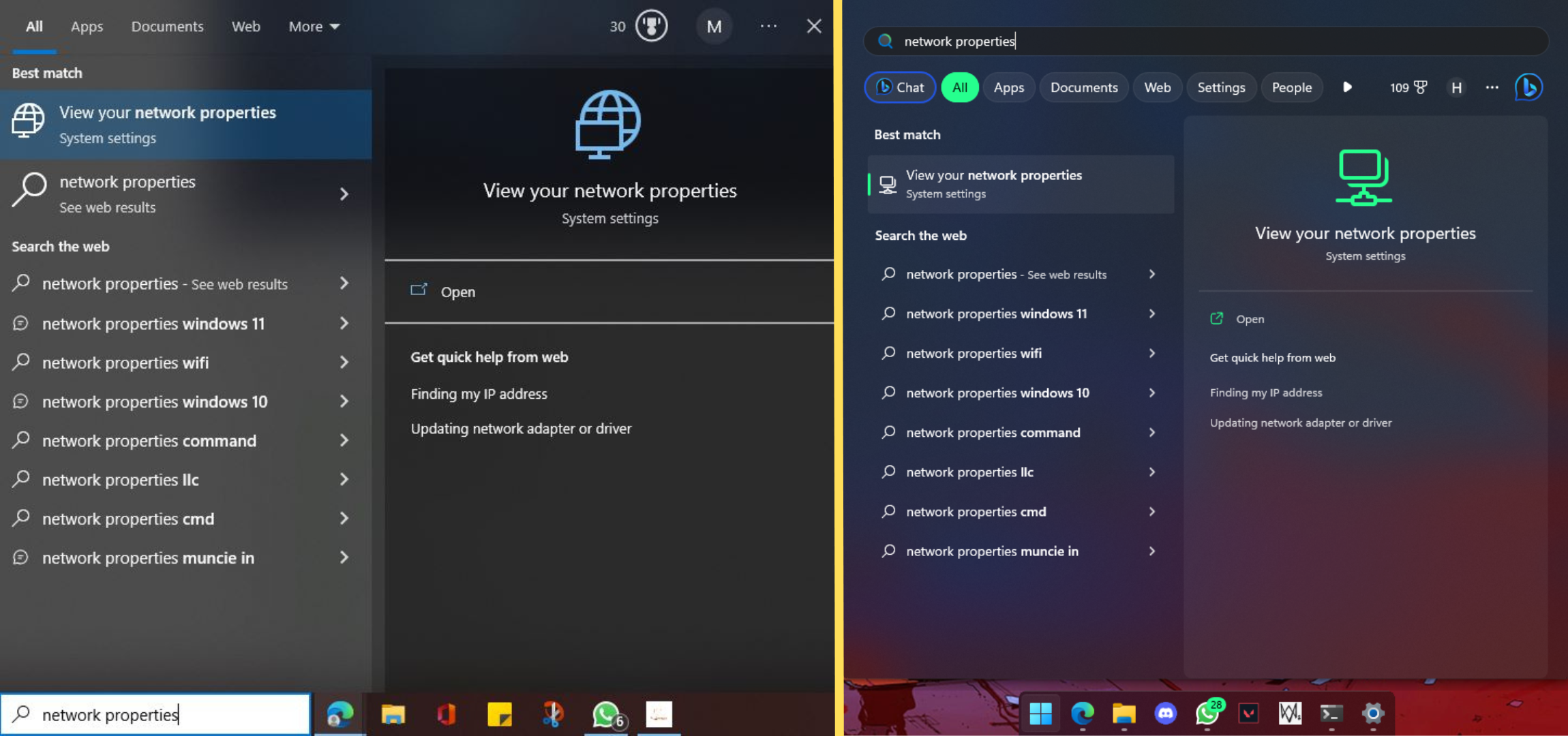 Your IP address in Windows 10 (left) and Windows 11 (right)