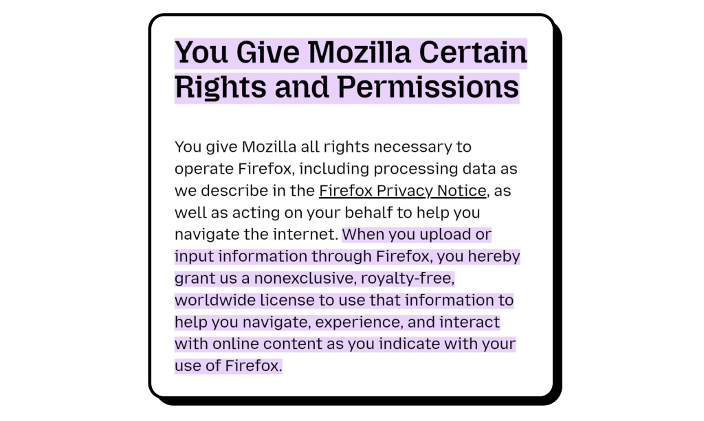 The section from Firefox’s new Terms of Use, which was dubbed troublesome, is as follows: