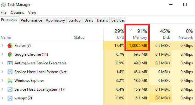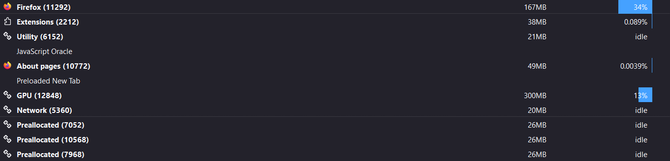 - Type about:processes into the address bar, press enter, and view memory and CPU usage with Troubleshoot Mode enabled.