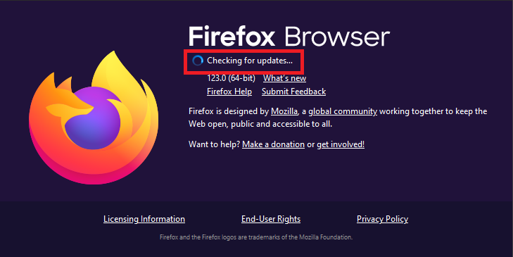 - Firefox will automatically check for updates. If an update is available, click Restart to apply it.