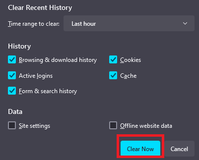 - Choose the time range and the types of data you wish to clear, then click Clear Now.