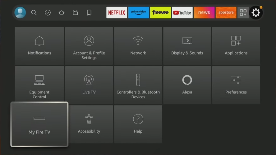 - Go to the Settings menu and select My Fire TV.