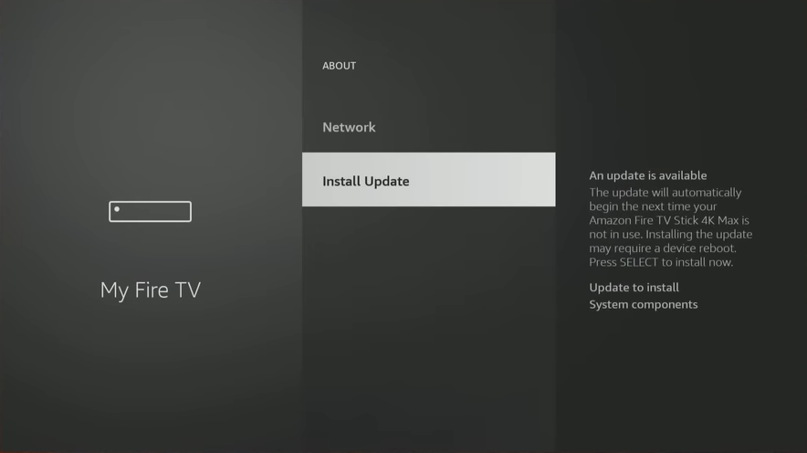 Navigate to Settings > My Fire TV > About > Check for Updates. If there’s an update available, you can install it from there.