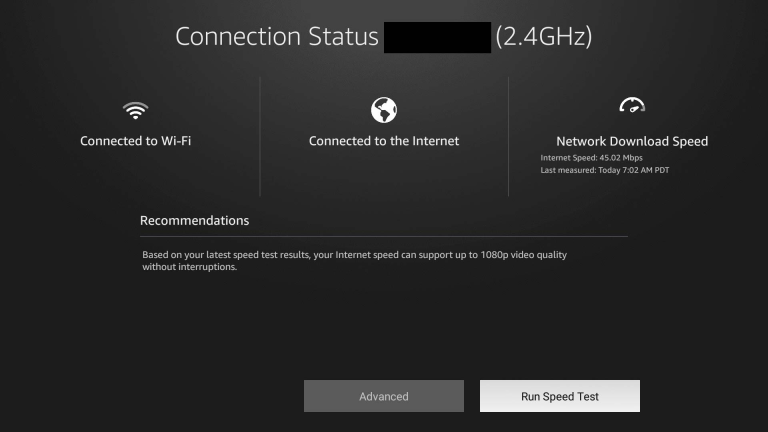You can check your connection speed within the Firestick settings. Navigate to Settings > Network > Play/Pause Button to view your network status and speed.