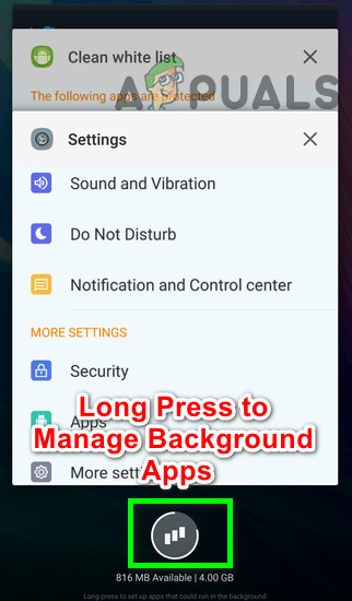 Long Press to Manage Background Apps - Now tap on Add to Whitelist.