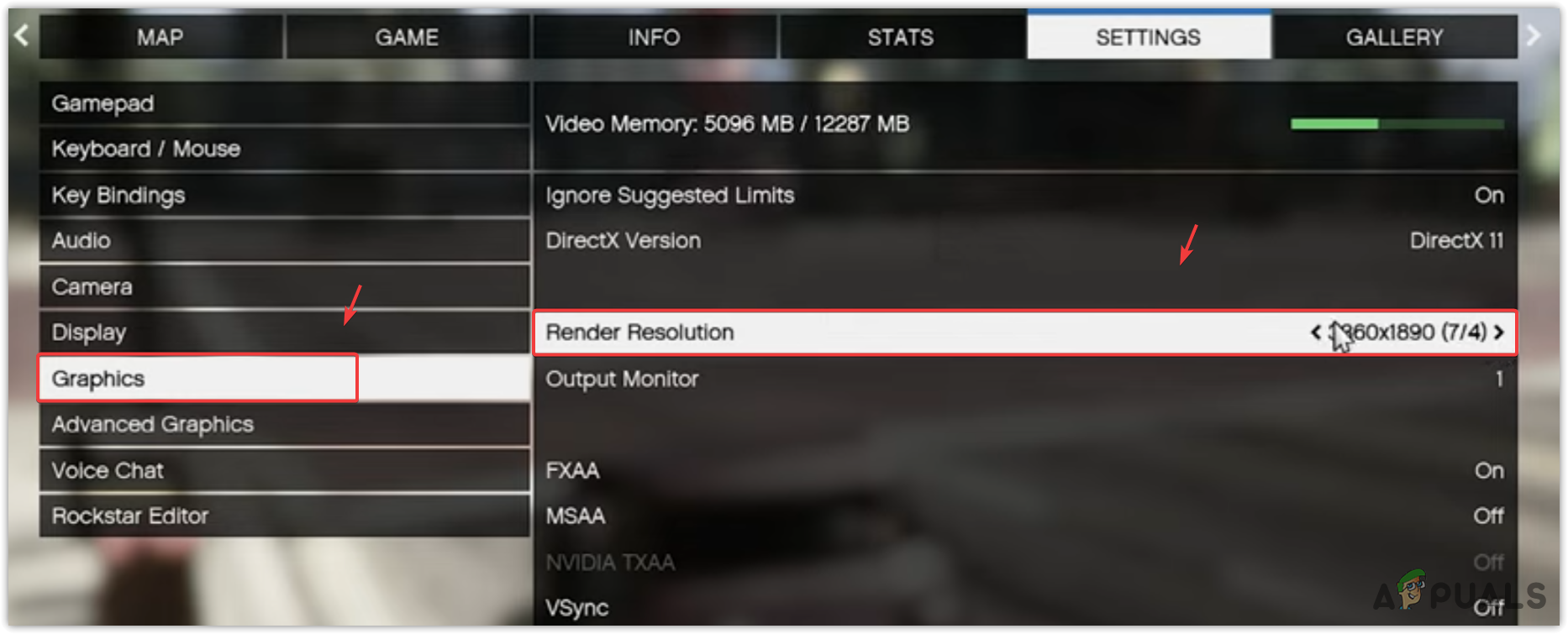 It is possible that FiveM is not utilizing the GPU properly because it does not need to. In this case, you can increase the Graphics Settings, especially the resolution. High resolution renders more pixels, which means the GPU load and its usage should increase by 80% to 90%. With that, we also recommend setting the GPU memory budget all the way up. To do so, follow the steps: