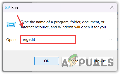 - Here, type regedit in the input box and click OK to open the registry editor.