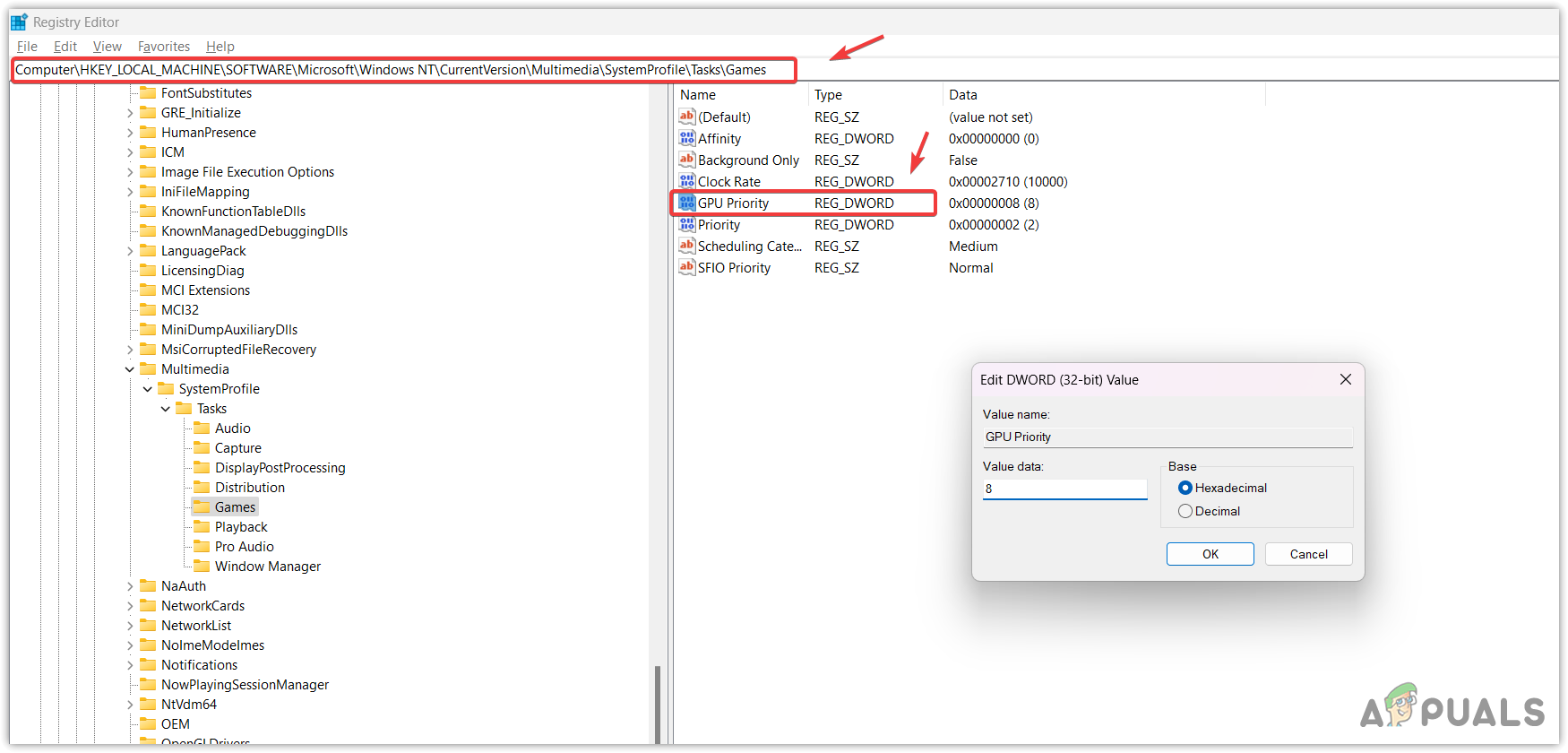 There are two entries in the registry editor Priority and GPU Priority. Both are intended to handle multimedia and gaming tasks. These entries are used to specify how Windows manages multimedia resources. By configuring these entries, Windows will give higher access or priority to the GPU resources, which will potentially increase the performance and fix the low GPU usage issue. Follow the steps to configure the registry entries.