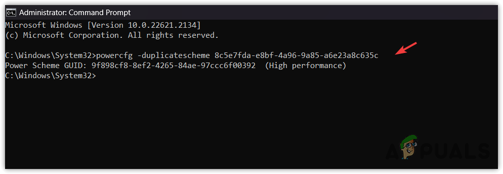 powercfg -duplicatescheme 8c5e7fda-e8bf-4a96-9a85-a6e23a8c635c
