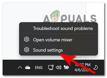 - After that, click on Sound settings from the context menu that just appeared.