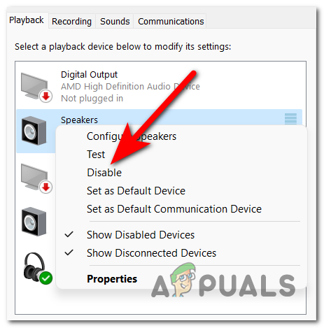 - Incompatible audio device – This some cases, this FiveM error has occurred because the game was not compatible with some audio devices on your PC. This can be fixed by disabling all the devices that you are not using from the Sound Settings.