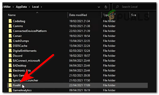- Now that you are inside the AppData folder, access the Local folder and search for the FiveM folder, then select it.