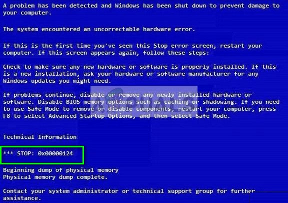 The stop error “0x00000124” is different from other blue screens of deaths because it stems from a hardware problem. This stop condition gives little details about where the error has originated so we have to approach this problem from an unknown hardware source.