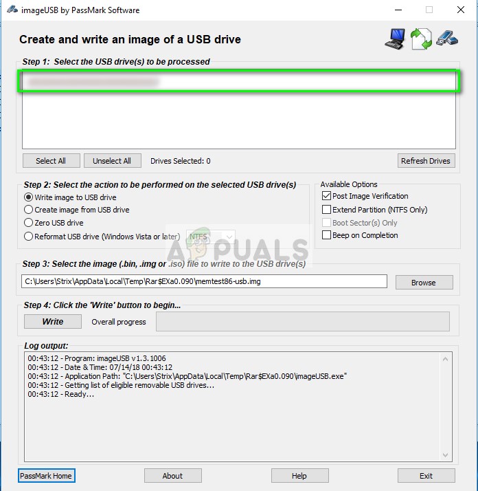 - Once the module is downloaded, run it and select a bootable USB drive inserted in your computer. Do note that installing memtest86 on a USB drive will erase all contents from it and create it a bootable drive.