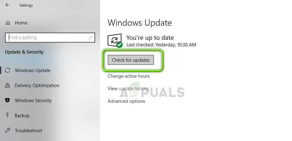 - Inside the Windows Update screen, click on Check for updates, then follow the on-screen prompts to install every pending Windows update.