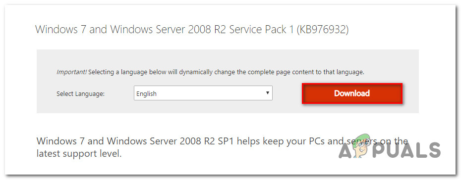 - Visit this link (here), select your language and hit the Download button to download Service Pack 1.