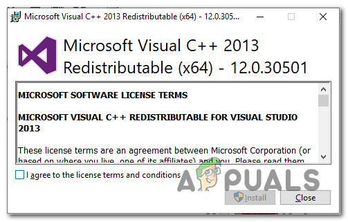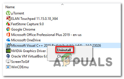 - Corrupted / incomplete Visual C++ Redistributable installation – The error can also be encountered if the user has an existing Visual C++ installation that is corrupted or incomplete. In this case, the solution is to uninstall any existing Visual C++ installations before reinstalling the required one from the official download page.