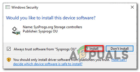 Installing the WinCDEmu tool - Once the tool has been installed, click on Install to add the required system software.
