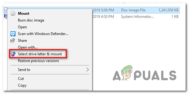 - Once the next startup is complete, navigate to the location where you downloaded the Iso file (at step 2), right-click on it and choose Select driver letter & mount.