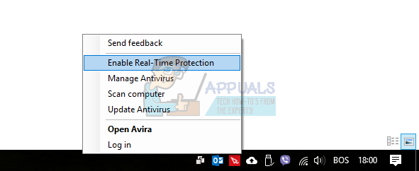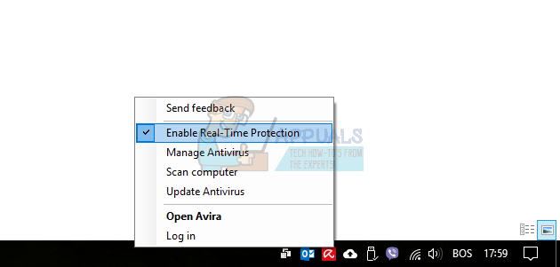 - Right click on Avira Antivirus and click Enable Real-Time Protection. By this action, you will disable real-time protection.
