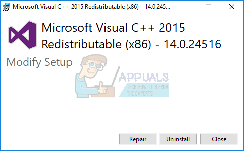 - Wait until Windows is finished repairing Microsoft Visual C++ 2015 Redistributable Package
