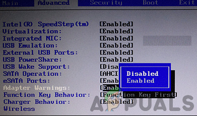 - Once in BIOS, go to the Advanced tab and then toggle the option of Adapter Warnings. This option may be present in another tab as well.