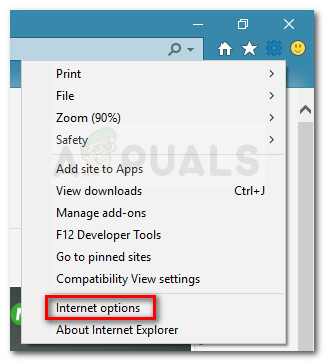 - Click on the Tools button (gear icon) then select Internet Options.