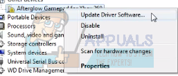- Right click on the Afterglow controller and select Update Driver Software.