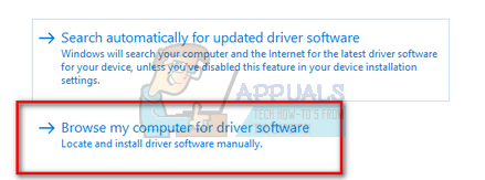 - After you click the option to update, Windows will give you two options. Either it will automatically update the driver itself, or it will ask you to browse your computer for driver software. Chose the second option.