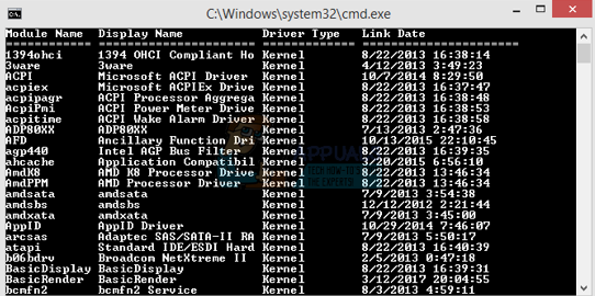 - When the Command Prompt pops up, type “driverquery” and hit Enter. Your computer will list down all the installed drivers along with their version, date modified, module name and the driver type.