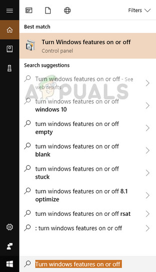 - Press Windows + S, type “Turn windows features on or off” and open the application in the result.