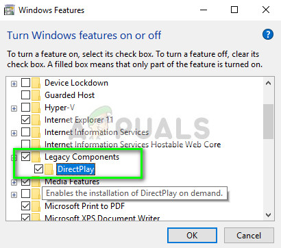 DirectPlay is a legacy API which was part of Microsoft’s DirectX. It is a network communication module which was developed for help in making games over any specific framework. Since the software is legacy, it is disabled by default. We will try to enable the module again and check if this solves the issue for us.