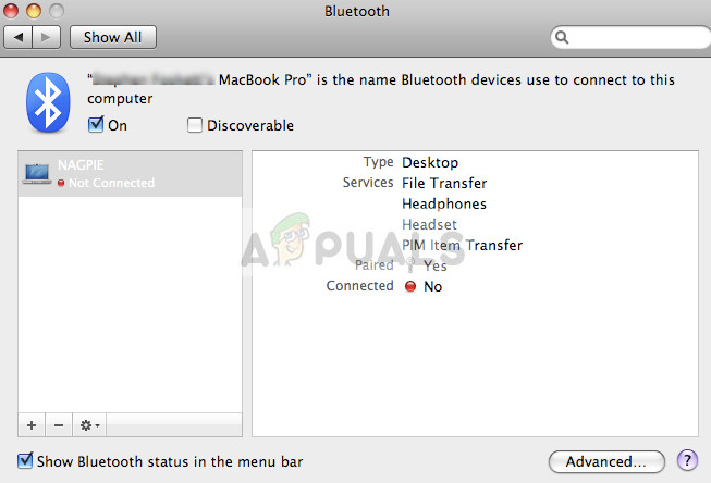 Several users reported that just opening the Bluetooth preferences on their Mac computers fixed the problem for them. Open the Bluetooth preferences and wait for a couple of seconds. Also, make sure that your Bluetooth is On and Discoverable.