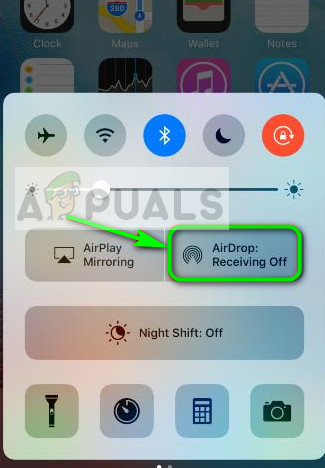 - To disable AirDrop on your iDevice, swipe up the context menu and click the ‘Do not disturb’ icon (it will be a moon), once if it is enabled.
