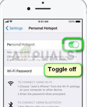 - To disable the personal hotspot on an iOS device, flip the hotspot feature to OFF position in Settings > Personal Hotspot.
