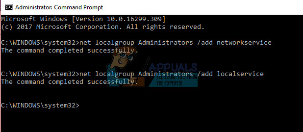 net localgroup Administrators /add networkservice net localgroup Administrators /add localservice