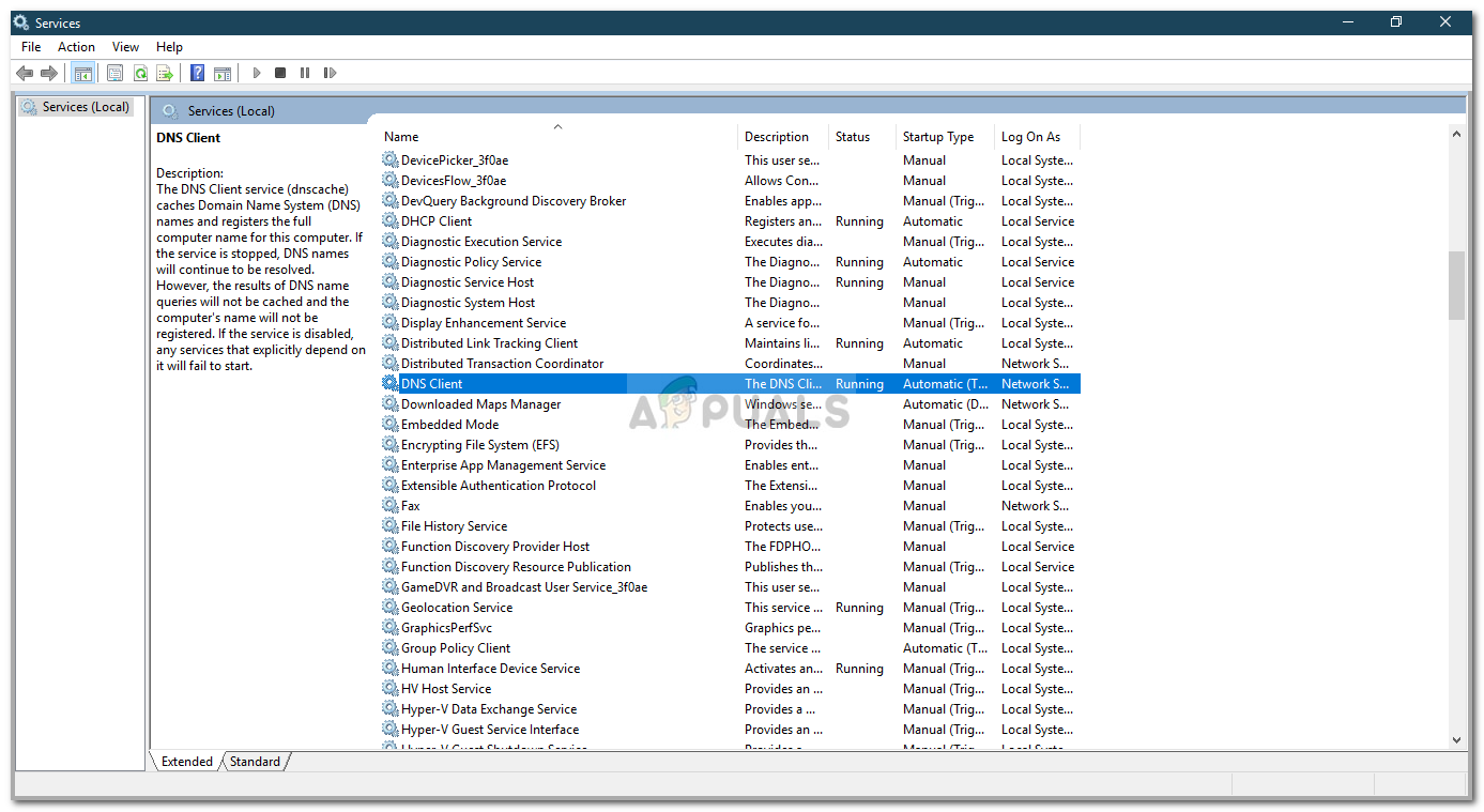 - DNS services: In some cases, the error can also generate due to a malfunctioning DNS service. Restarting the service seems to fix the issue.
