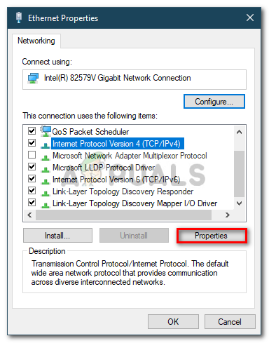 - From the list, highlight Internet Protocol Version 4 (TCP/IPv4) and then click Properties.