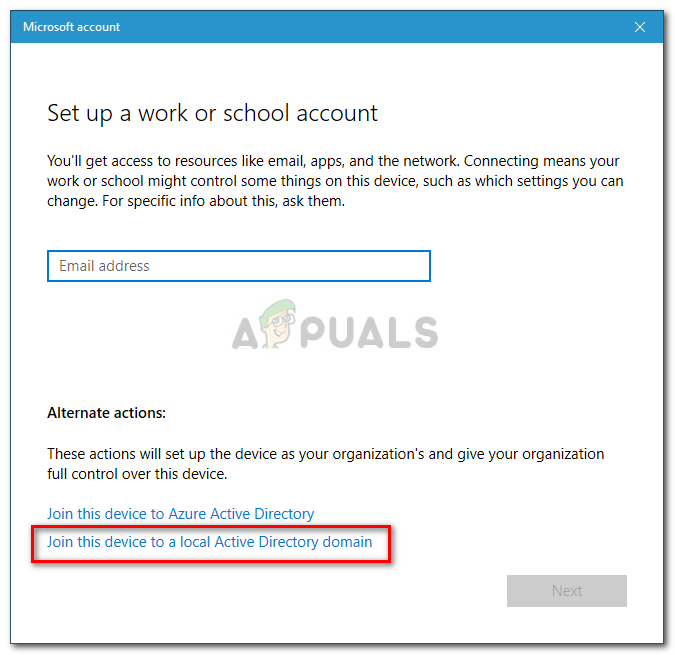 - A new window will pop up, click on ‘Join this device to a local Active Directory Domain’.