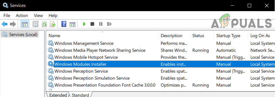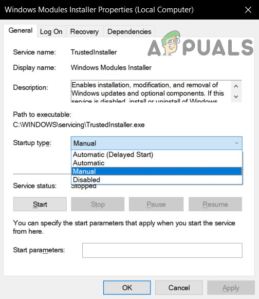 Set Windows Modules Installer Startup Type to Manual - Now apply your changes and check if you can complete the installation/uninstallation process you were having issues with.