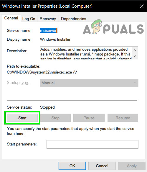 Open Windows Installer Service Setting - Now click on Start to start this service.