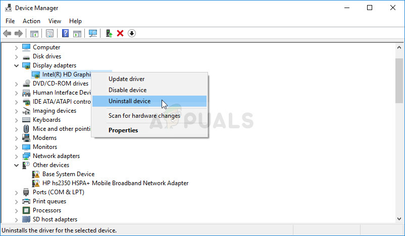 - Expand the Display adapters section in Device Manager, right-click on your graphics card and select the Uninstall Device option.